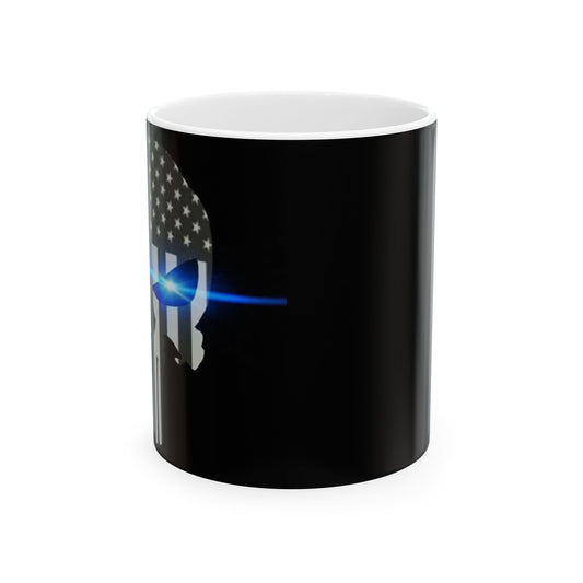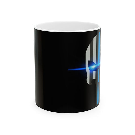 Left Side Print Thin Blue Line Skull Ceramic Mug, (11oz, 15oz)